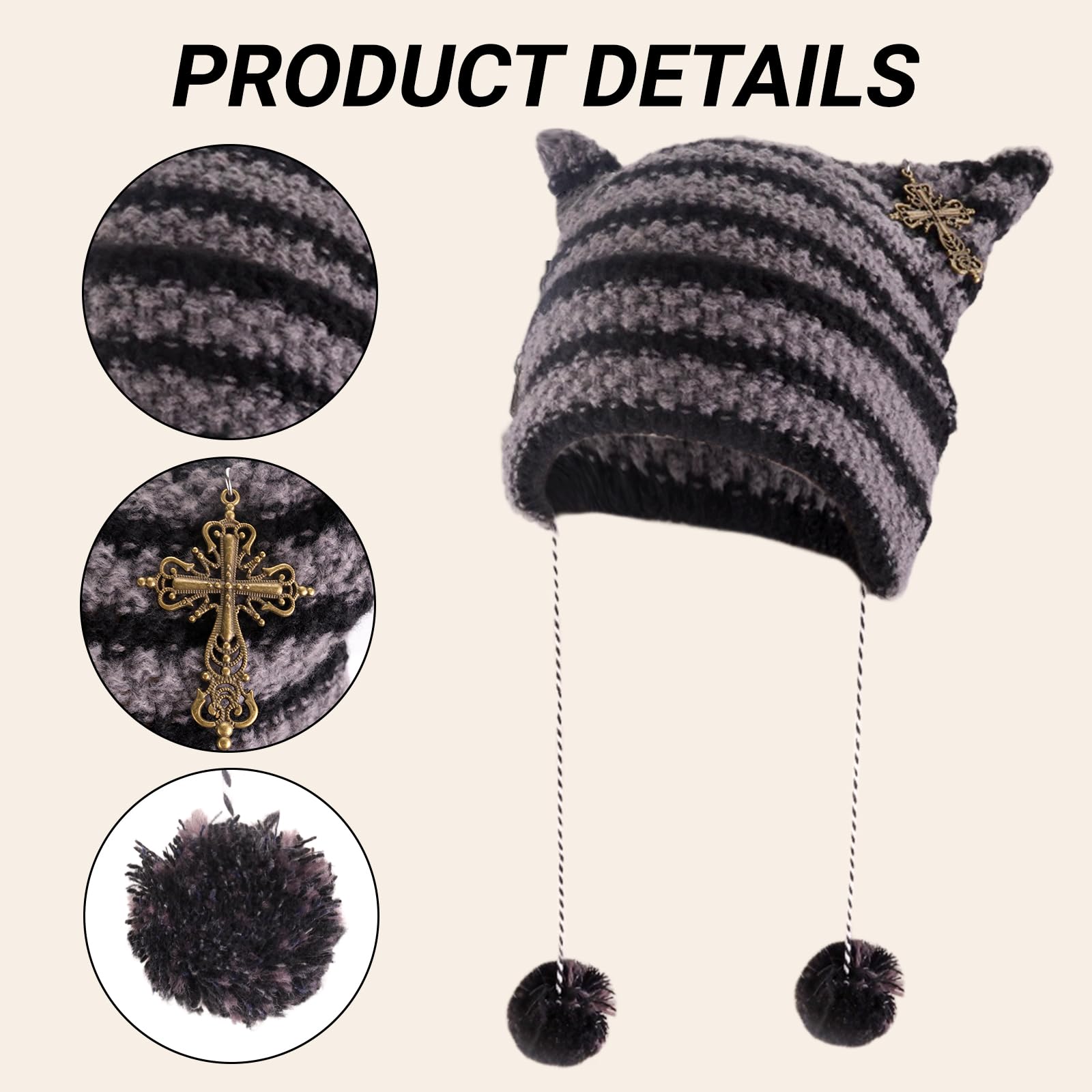 - 2-Piece Matching Set: This stylish accessory set includes one knitted beanie with adorable cat ears and a pair of matching fingerless gloves. Together they create a coordinated look that blends cuteness with attitude, making it the perfect choice for anyone who loves grunge, emo, goth, or Y2K-inspired outfits