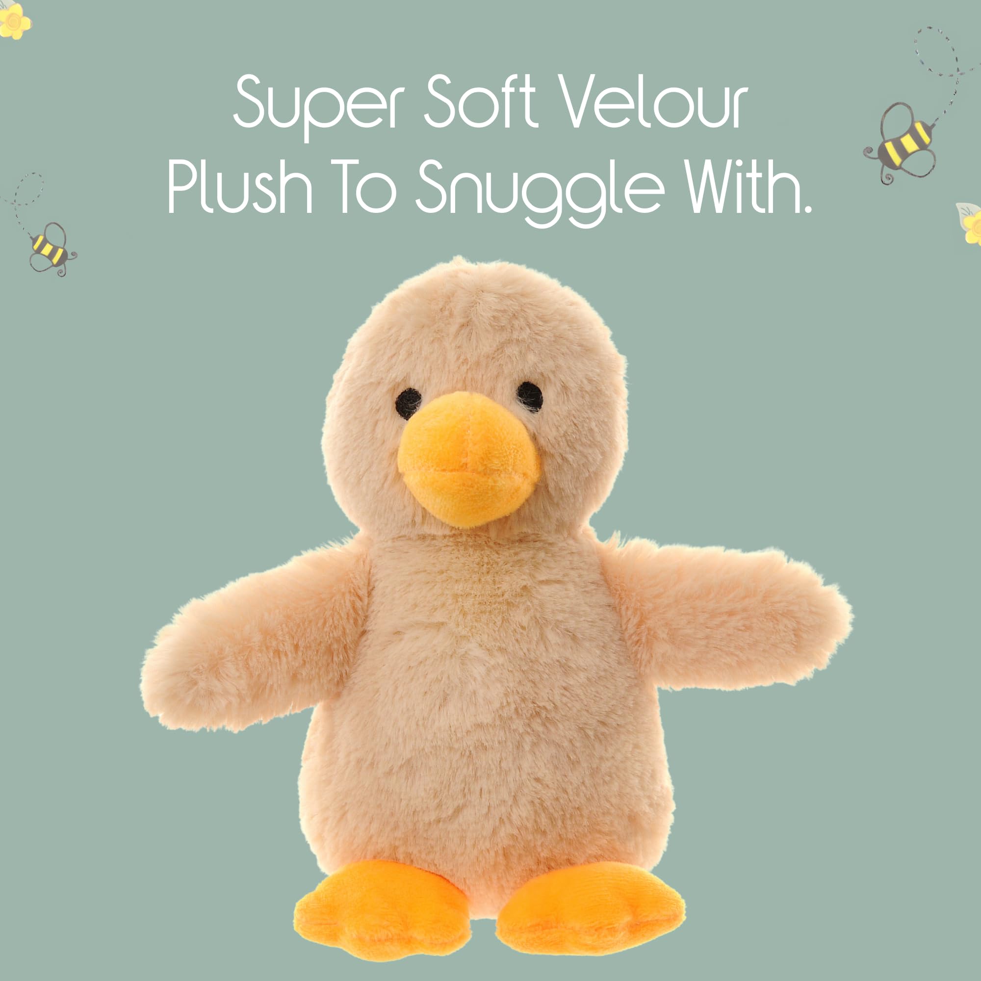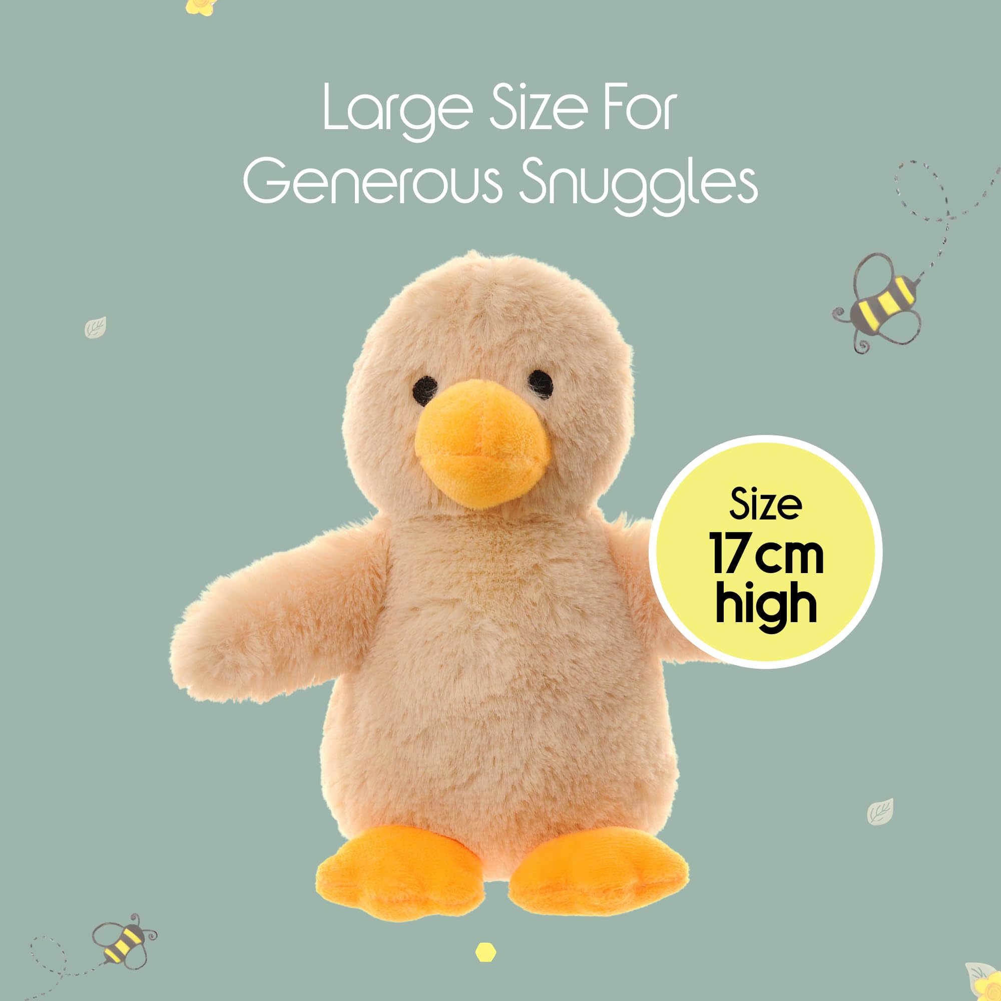 - Snuggle-Ready Size Measuring 17cm tall, this soft toy duck is ideal for tiny hands to cuddle. Great for home, car seats, or pramsthis will likely become babys favourite companion.