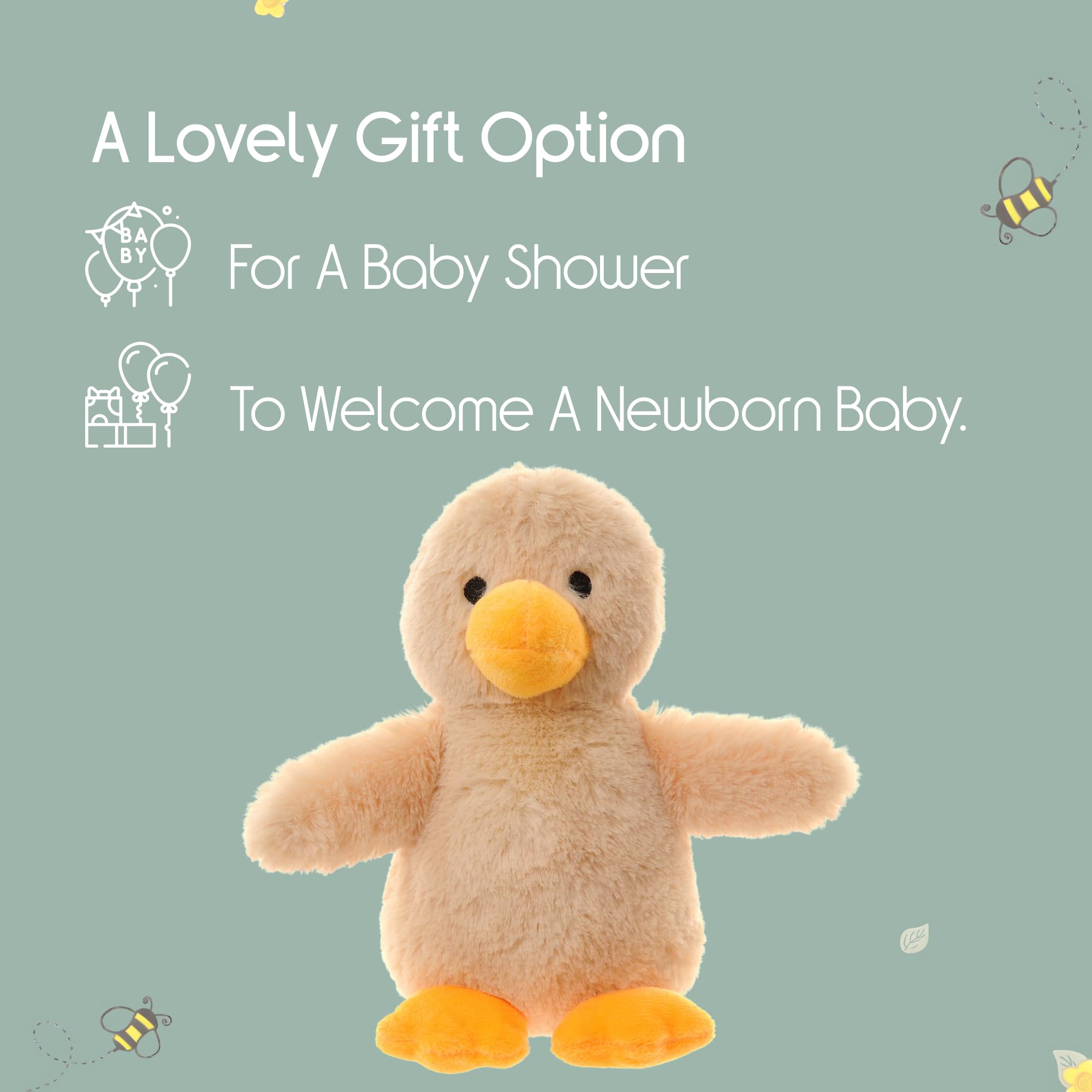 - Perfect Gift for Newborns A thoughtful baby present for new baby boys or girls. Ideal for baby showers or new mums, this joyful duck toy is a soft, safe, and adorable keepsake.