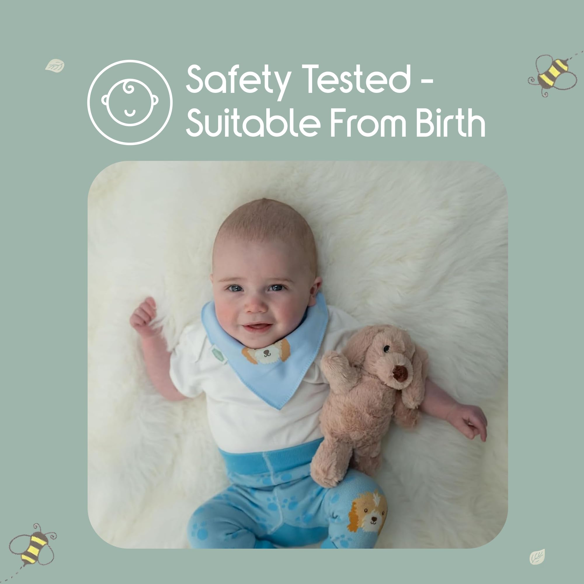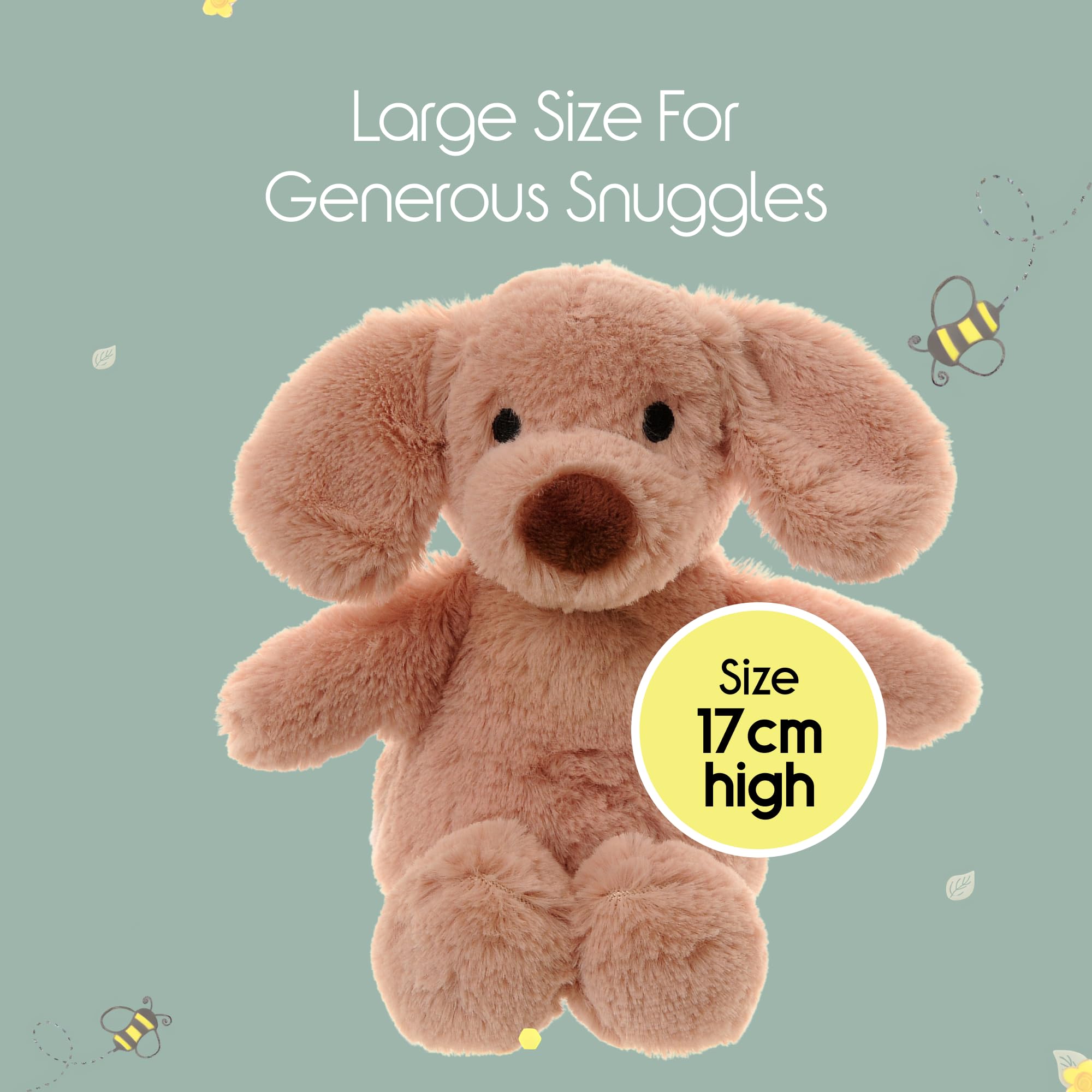 - Snuggle-Ready Size Measuring 17cm tall, this soft toy dog is ideal for tiny hands to cuddle. Great for home, car seats, or pramsthis will likely become babys favourite companion.