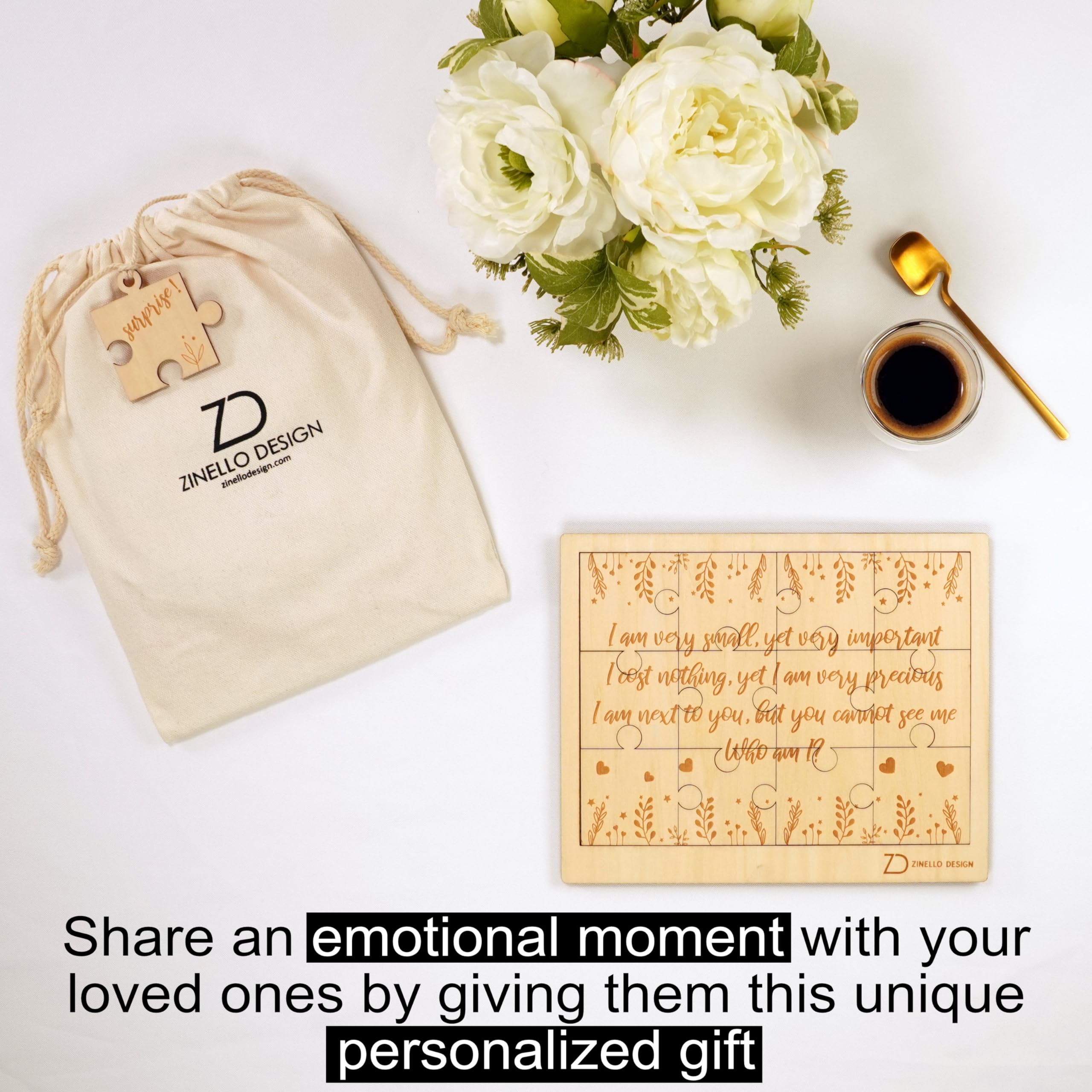 - Need an original idea to announce your pregnancy to your husband, parents, family, and friends? Zinello Design wooden puzzle is the perfect pregnancy announcement gift to surprise your loved ones with.