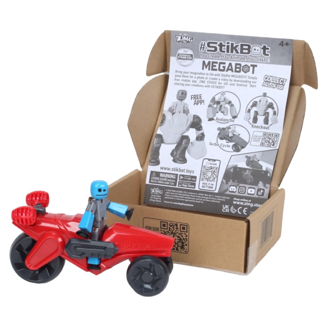 CREATE, ANIMATE, & SHARE! StikBots are the ultimate stop-motion action figures for kids to unleash their creativity and make stop-motion videos anywhere! With fully articulating joints and suction cup feet that stick to almost any smooth surface, StikBots are perfect for imaginative play and filmmaking. Punch through any barrier with the indestructible Knockout Megabot! Stikbot Megabots are an essential addition to your Stikbot movie cast. Using the Stikbot Studio 2.0 App, kids ages 6 and up can learn stop motion animation techniques, bringing these toys to life. Once filmed, you can upload your video creation from the app to share with their friends using #Stikbot. Get inspired by other daily content including fan-made movies and original Stikbot shows on our Youtube channel, Stikbot Central.
