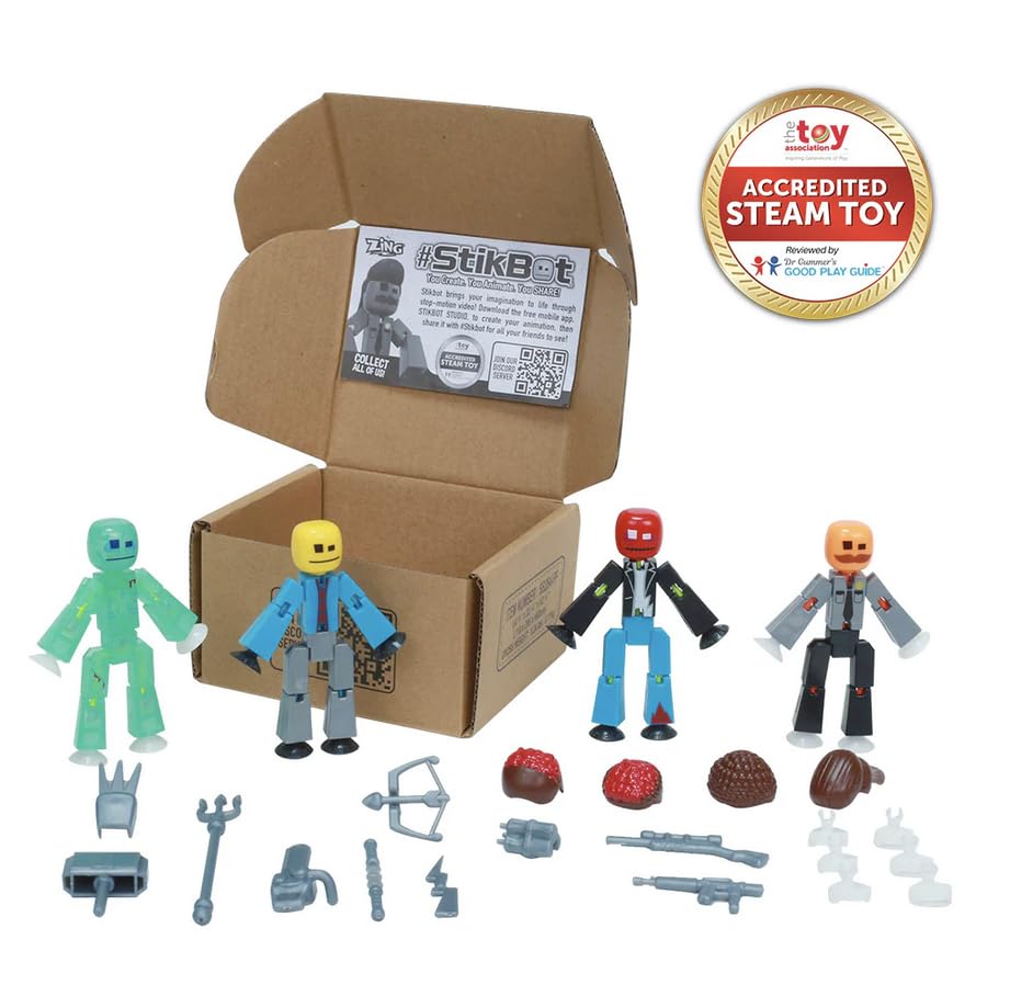 StikBots are posable sticky bots who will adhere to almost any smooth surface thanks to their suction-cup hands and feet. Their unique design allows StikBots to be posed in countless ways – limbs, torso, and even their neck can be positioned in almost any angle imaginable! BEWARE – StikBots are ridiculously fun and extremely addictive to play with! You won’t be satisfied until you own the entire StikBot collection. But StikBots are more than just cute posable figures.