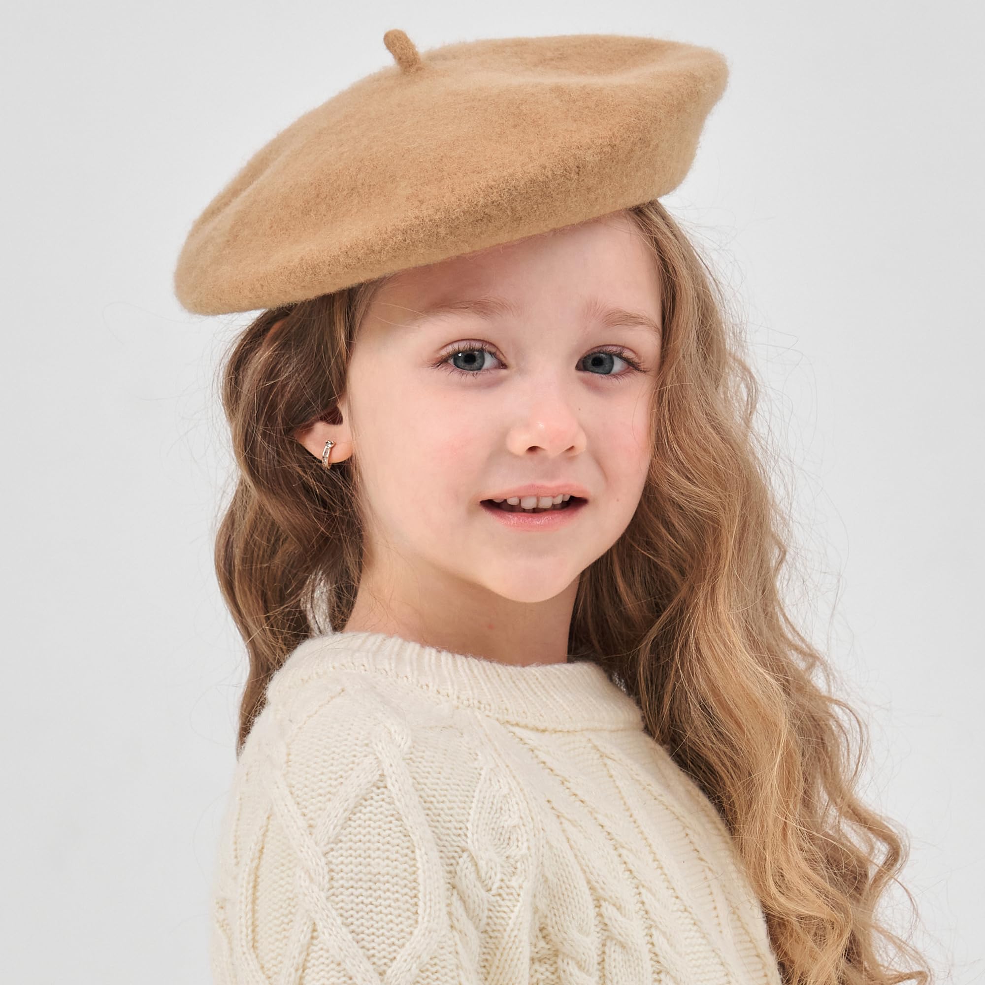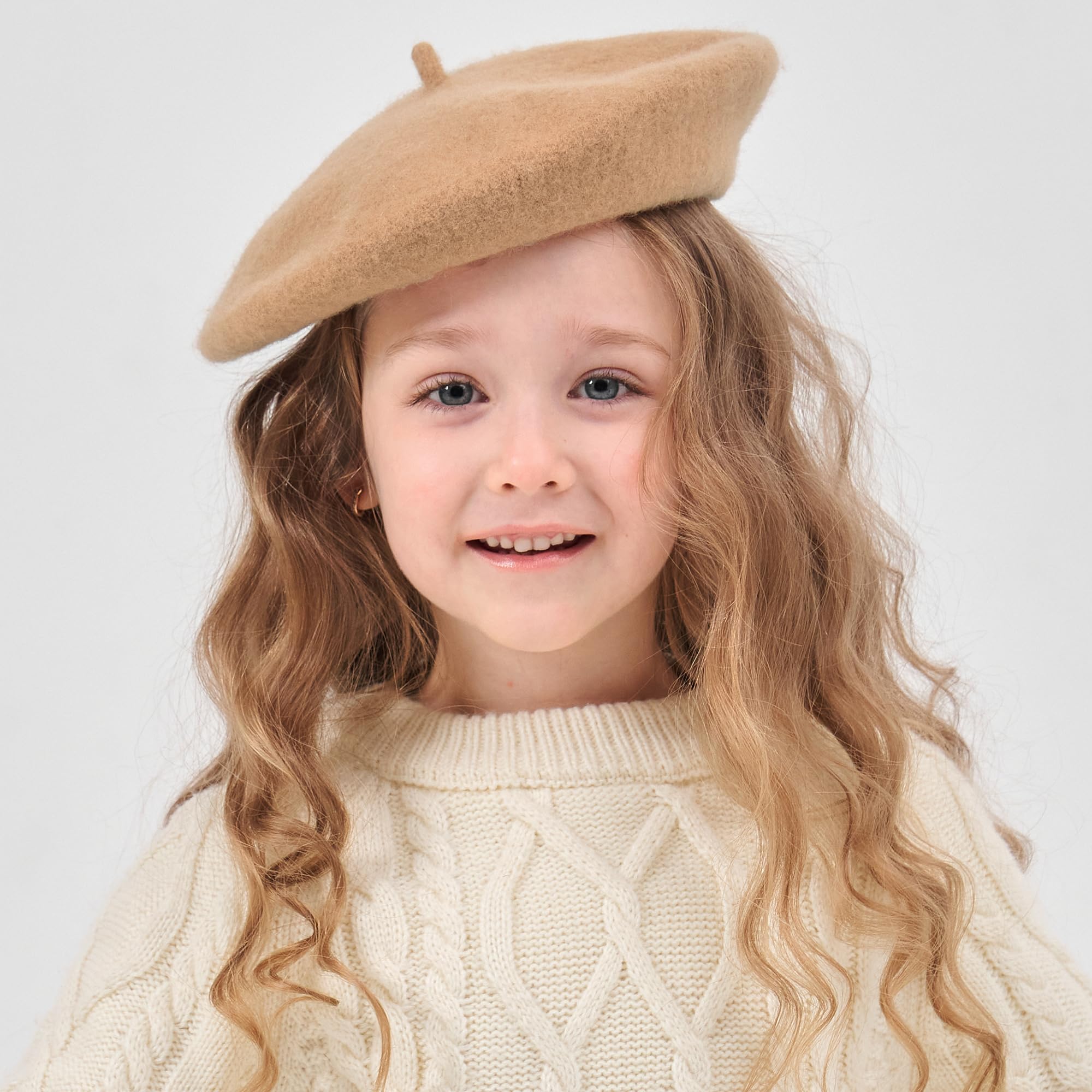 ZLYC Wool Kids Beret Hat Girls Solid Color Artist French Beret Cap(Camel)