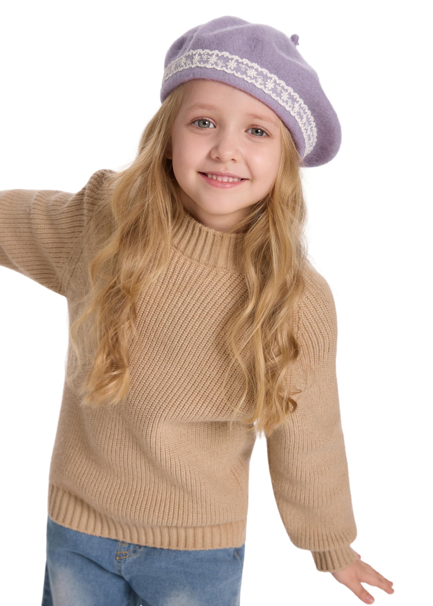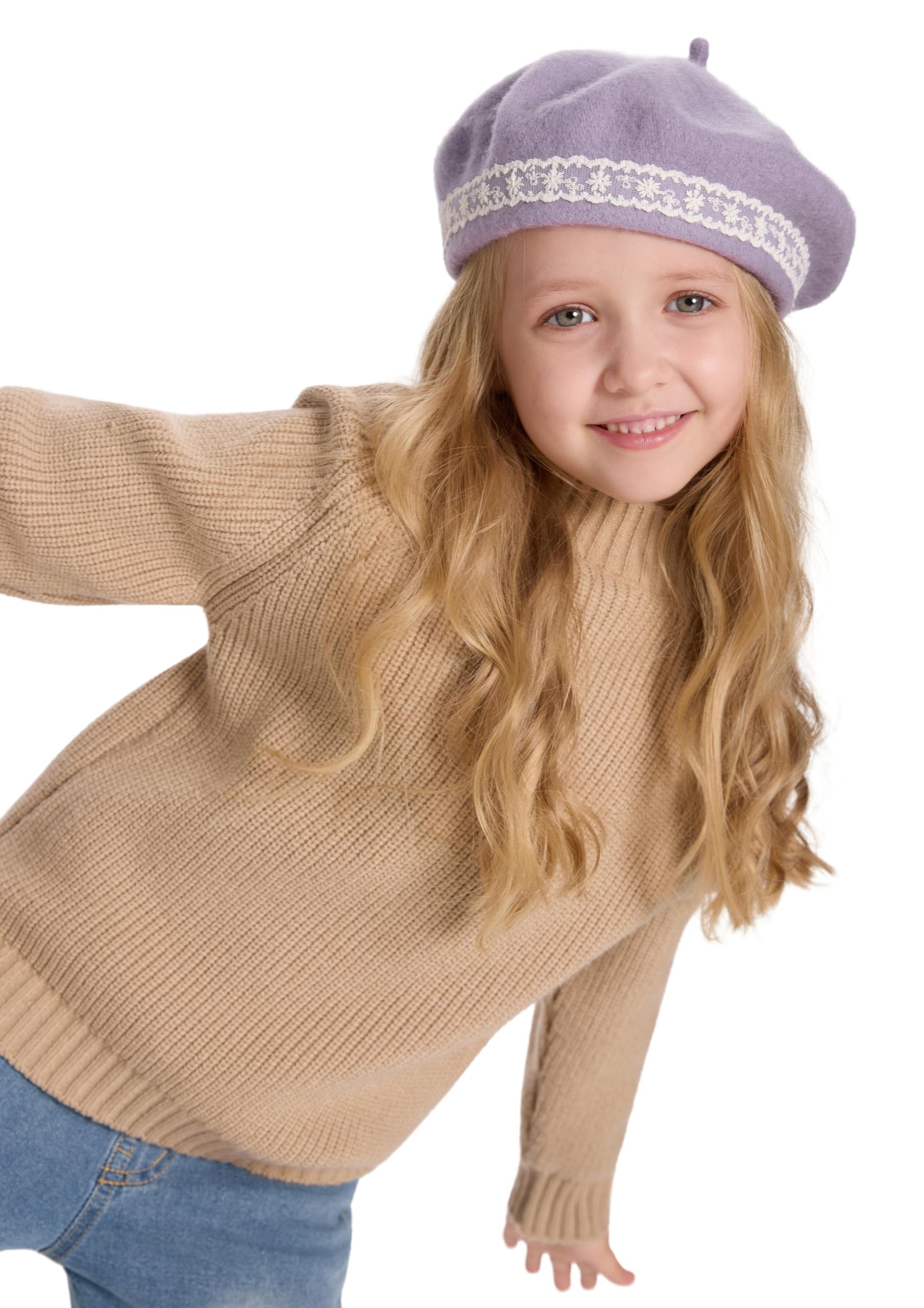 ZLYC Wool Kids Beret Hat Girls Solid Color Artist French Beret Cap(Lace Lavender),One Size