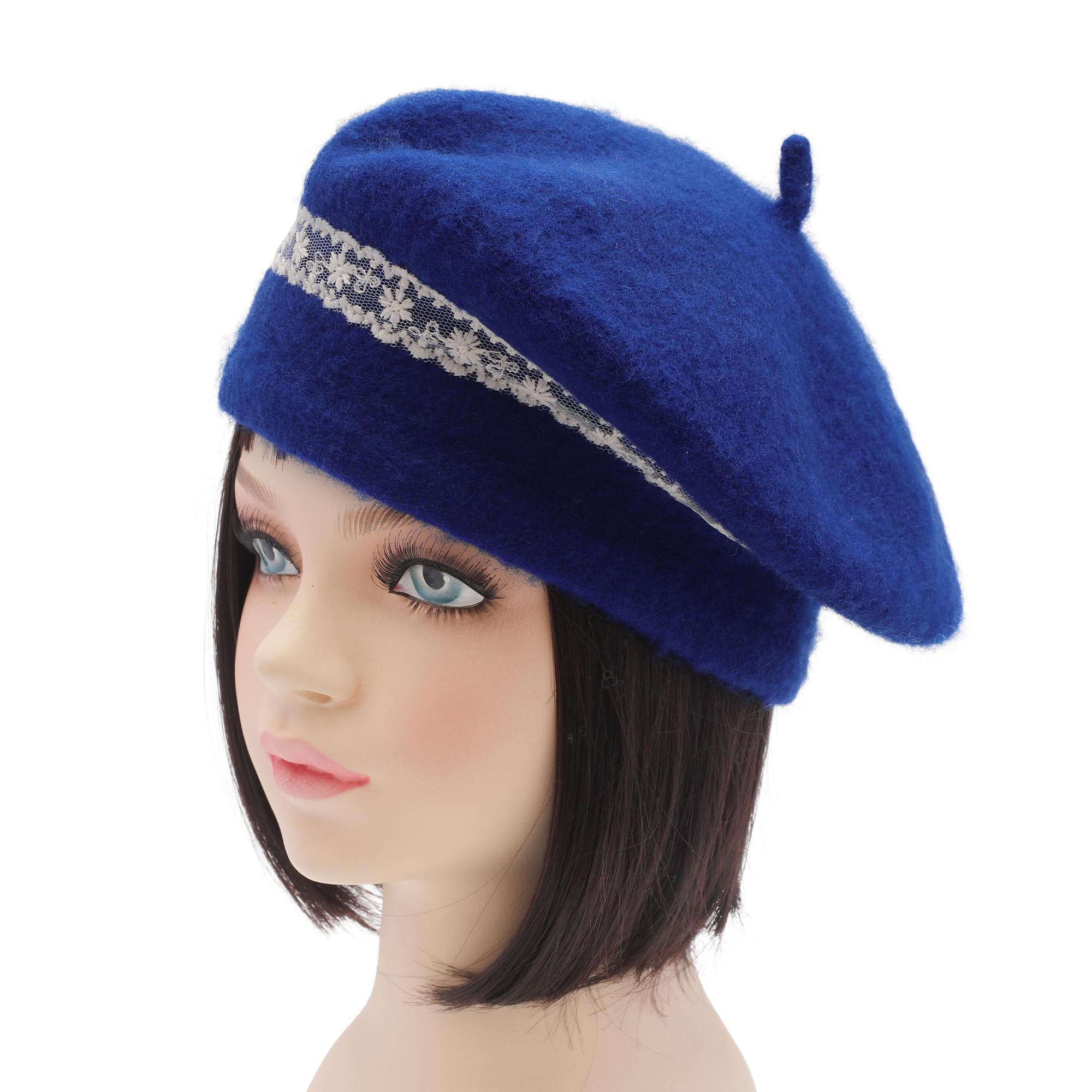 ZLYC Wool Kids Beret Hat Girls Solid Color Artist French Beret Cap(Lace Royal Blue),One Size