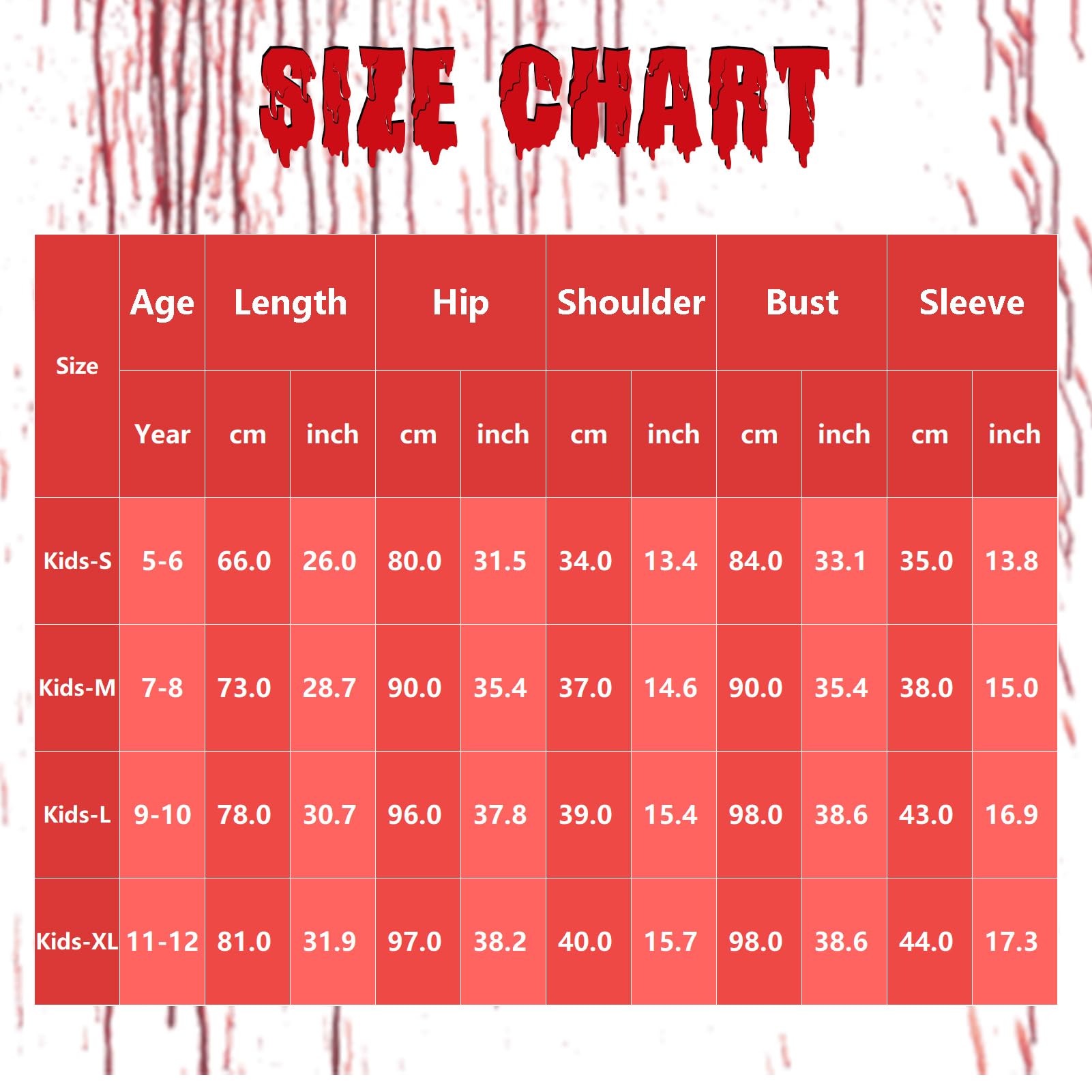 - Size-Cheerleader Halloween costume kids comes in 4 sizes, S (5-6 years), M (7-8 years), L (9-10 years), XL (11-12 years). If your kid’s size falls between 2 size ranges, suggest choosing the size up. Please refer to the size guide image for more information.
