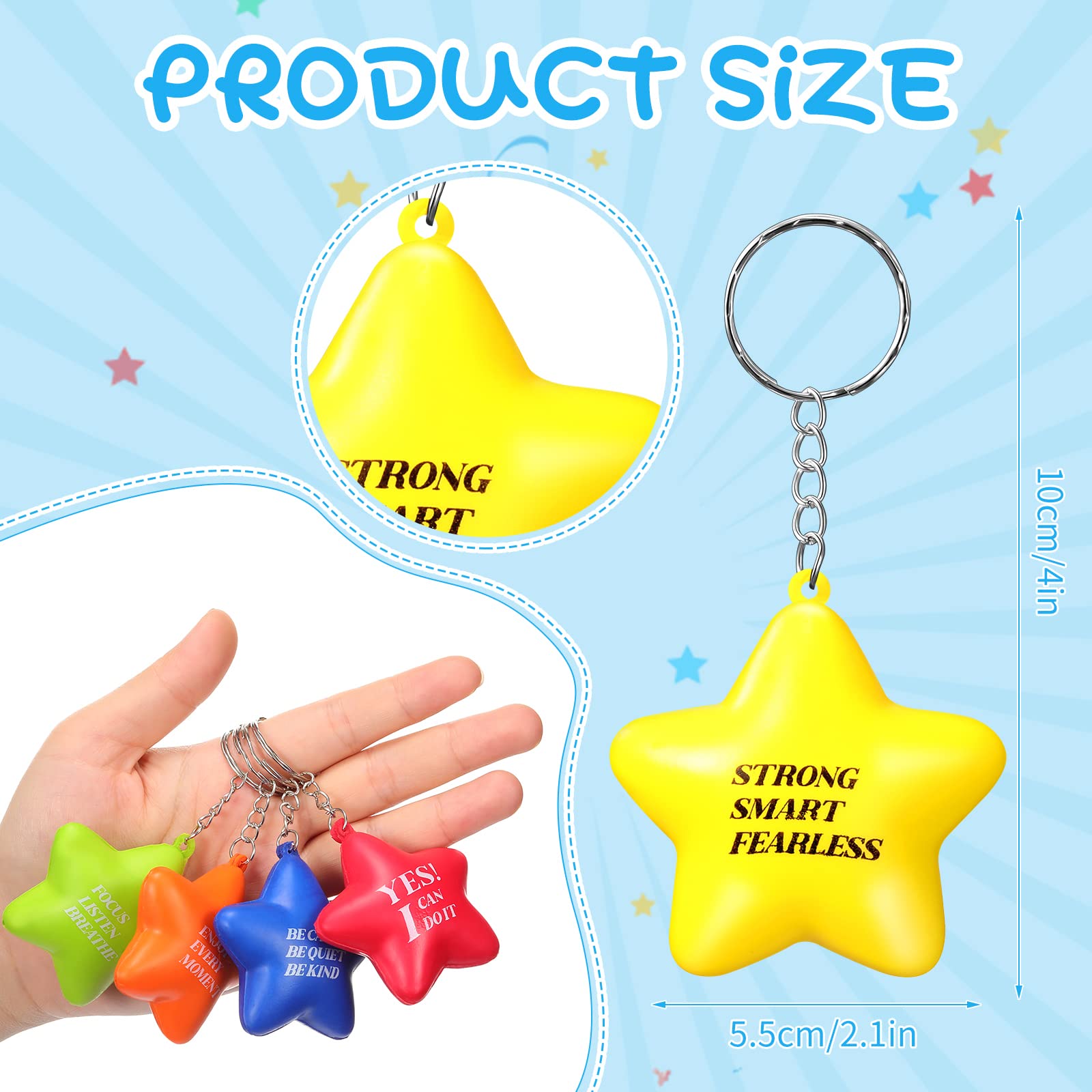 The inspirational stress balls are lightweight and compact, can serve well as keychains to collect and organize your keys and small pendants. You can easily carry them with you, and play them while working, studying, meeting or watching TV.
