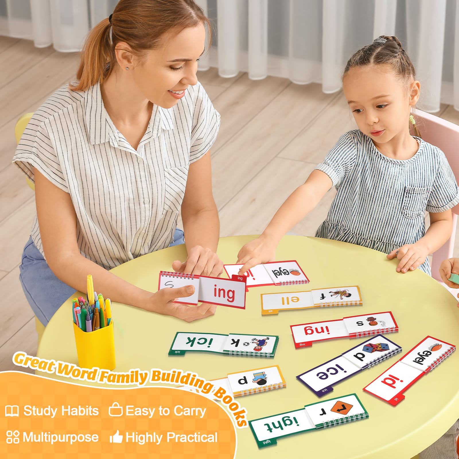 This innovative flip book (which also functions as flashcards) combines education with entertainment, making it the perfect learning tool for strengthening cognitive skills and improving vocabulary recognition and accumulation. It is also an ideal gift for preschoolers and kindergarteners, helping them take their first confident steps towards reading while having fun!