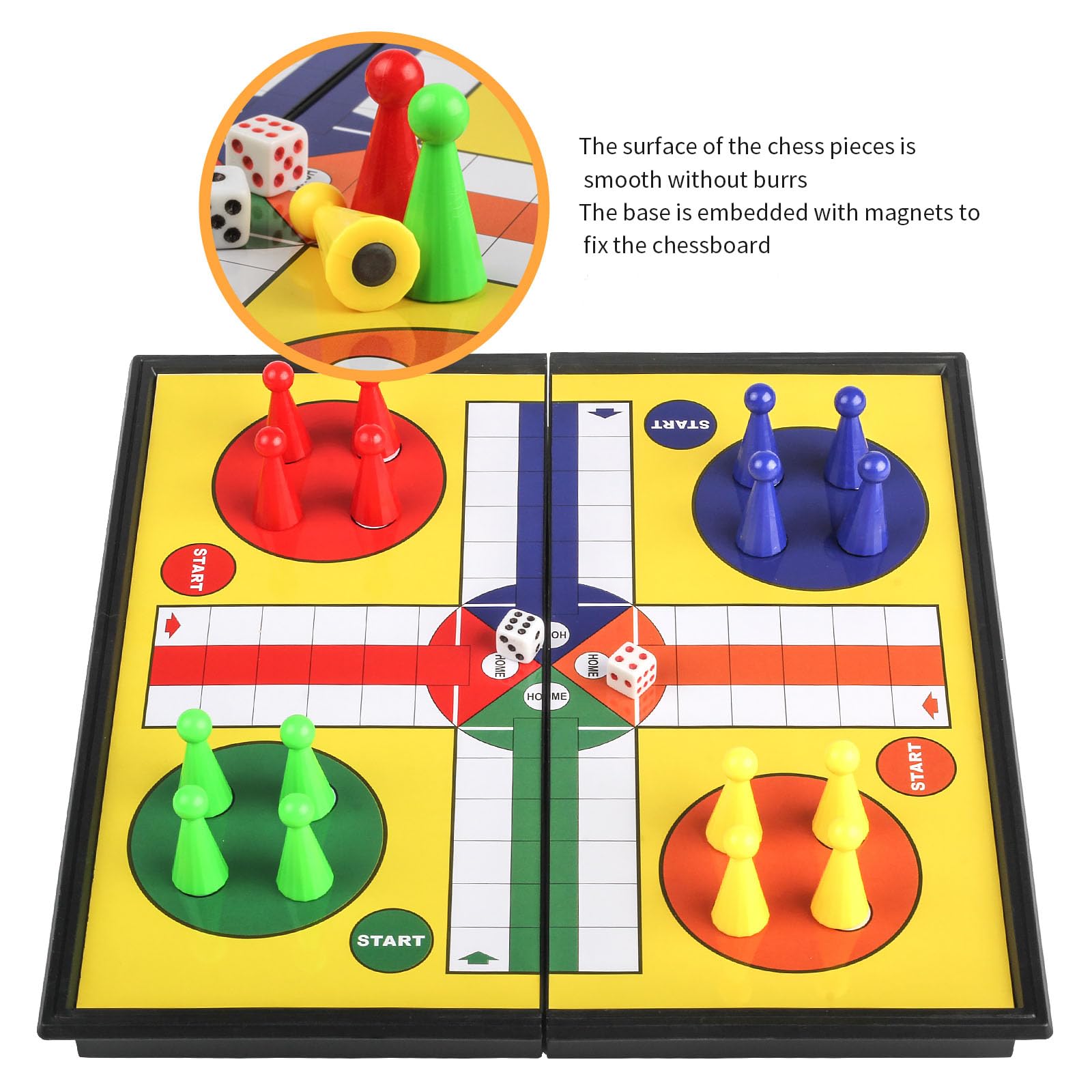 ZUNIPLEX Magnetic Ludo Game Board,Foldable Flying Chess Travel Board Game,Dice Game,Board Game for Kids Beginner Travelling Chess Piece Set with Portable Storage