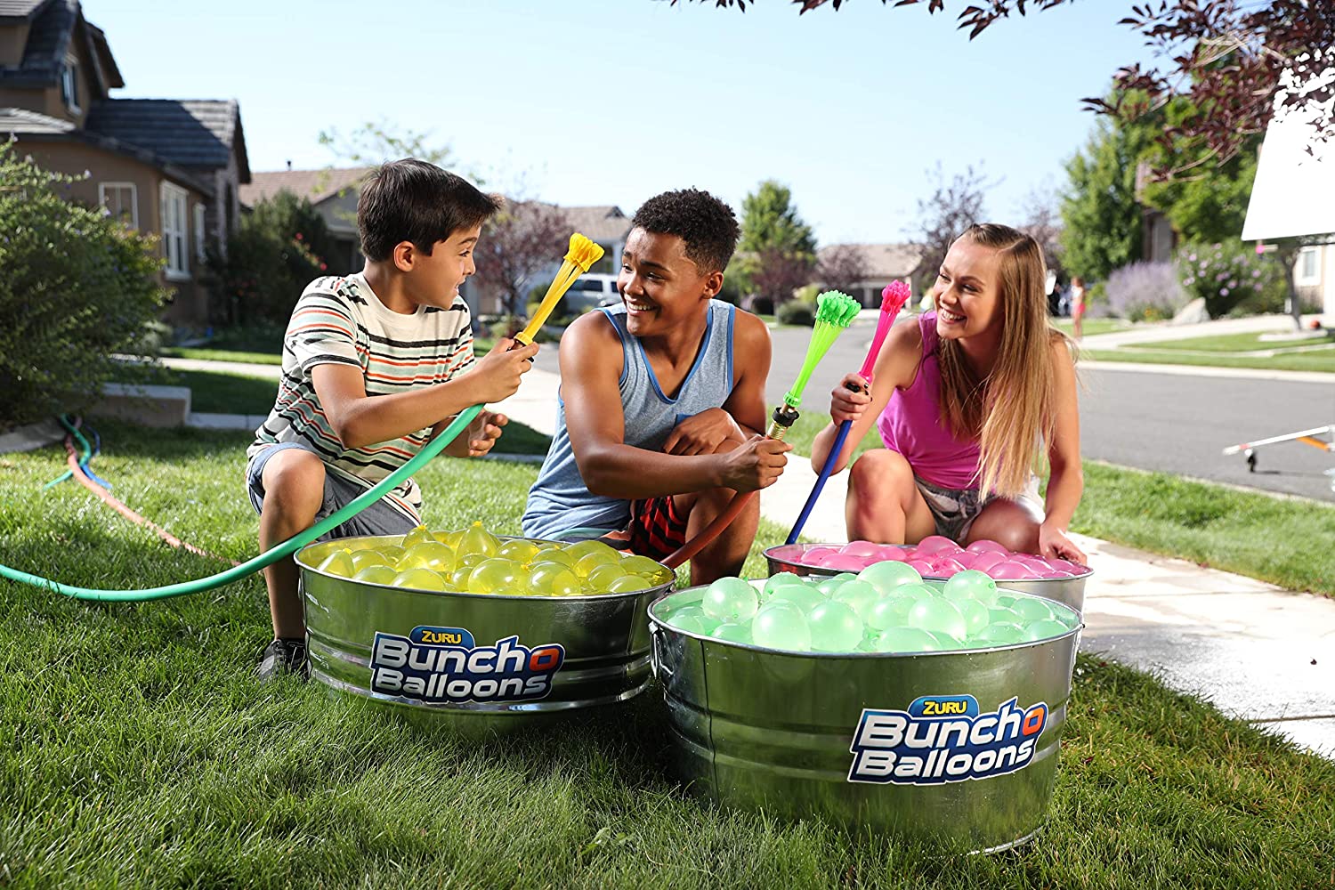 Unleash the thrill of summer with ZURU BUNCH O BALLOONS Fill and tie 100 water balloons in less than 60 seconds with these sensational self-tying water balloons With innovative O-ring technology and rapid fill capabilities, say goodbye to the stress and mess of filling individual water balloons and say hello to never ending splash out loud Fun Simply connect to a tap or a hose, fill and make hundreds of water balloons with no hand-tying. Take them to a pool party, to your backyard, to a barbecue, The beach or anywhere else to unleash summer no matter where you are Summer’s too short, make sure you spend it having splashing refreshing fun This pack includes 8x bunch O balloons (280 self-tying, rapid fill water balloons). bunch O balloons are the award-winning (toy of the year) patented invention that helps you make the most out of summer with friends and family