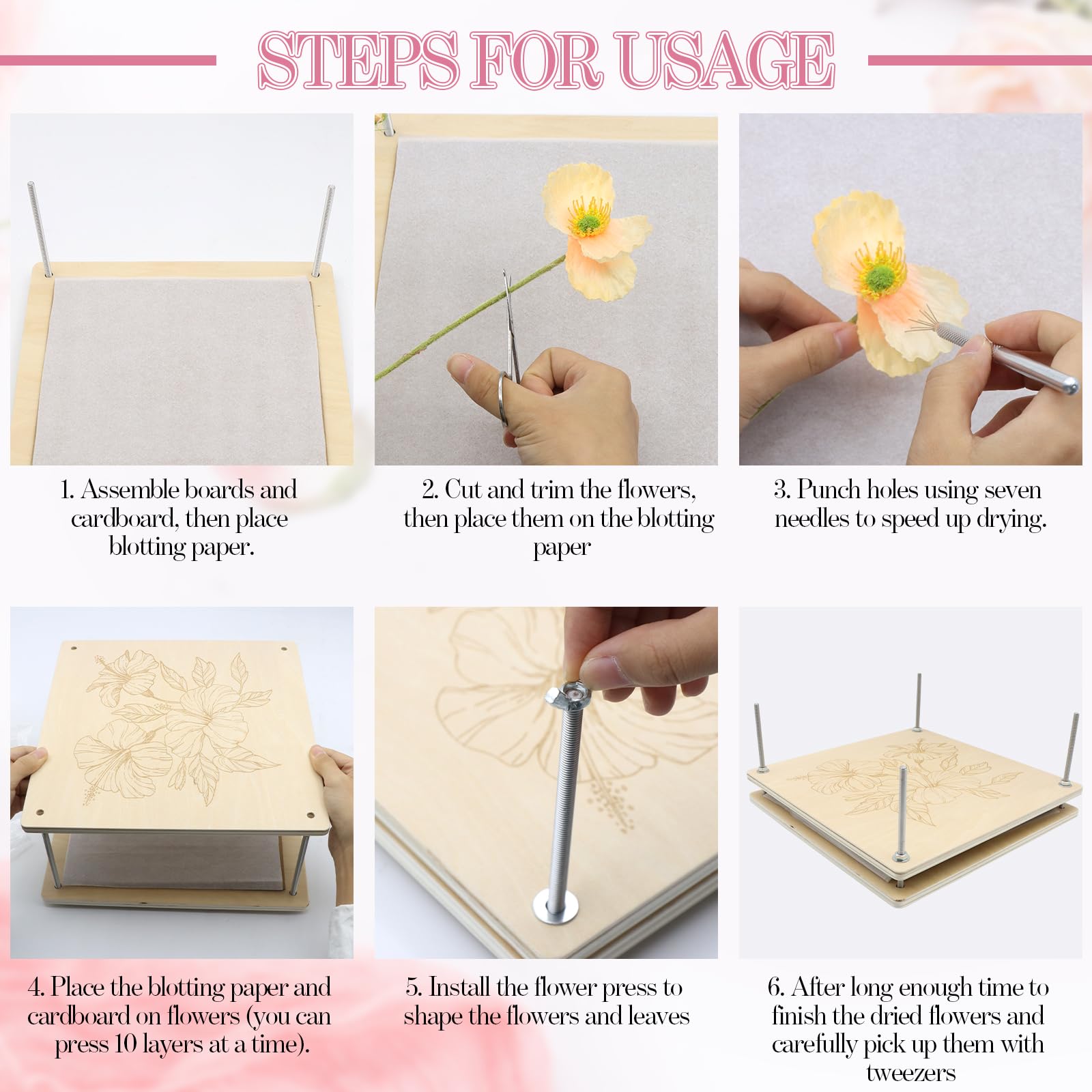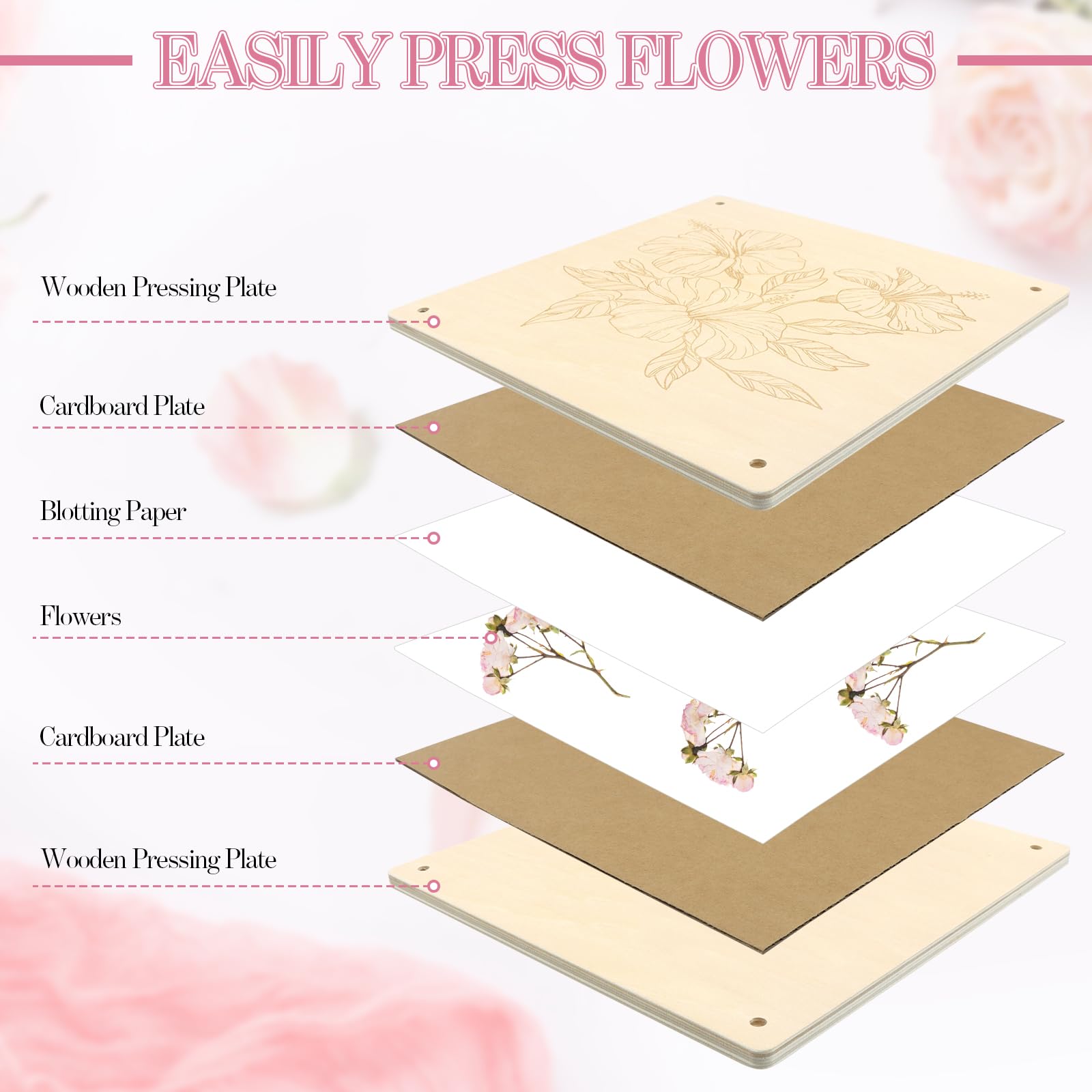 - [Sturdy and Convenient]: The wooden plates are made of high-strength wood, heavey-duty and not easy to deform, and can release even and long-lasting pressure to flowers and plants. The fine and even blotting papers have super absorbent ability and breathability, which allows water vapour to be quickly dispersed and avoids mould and mildew.